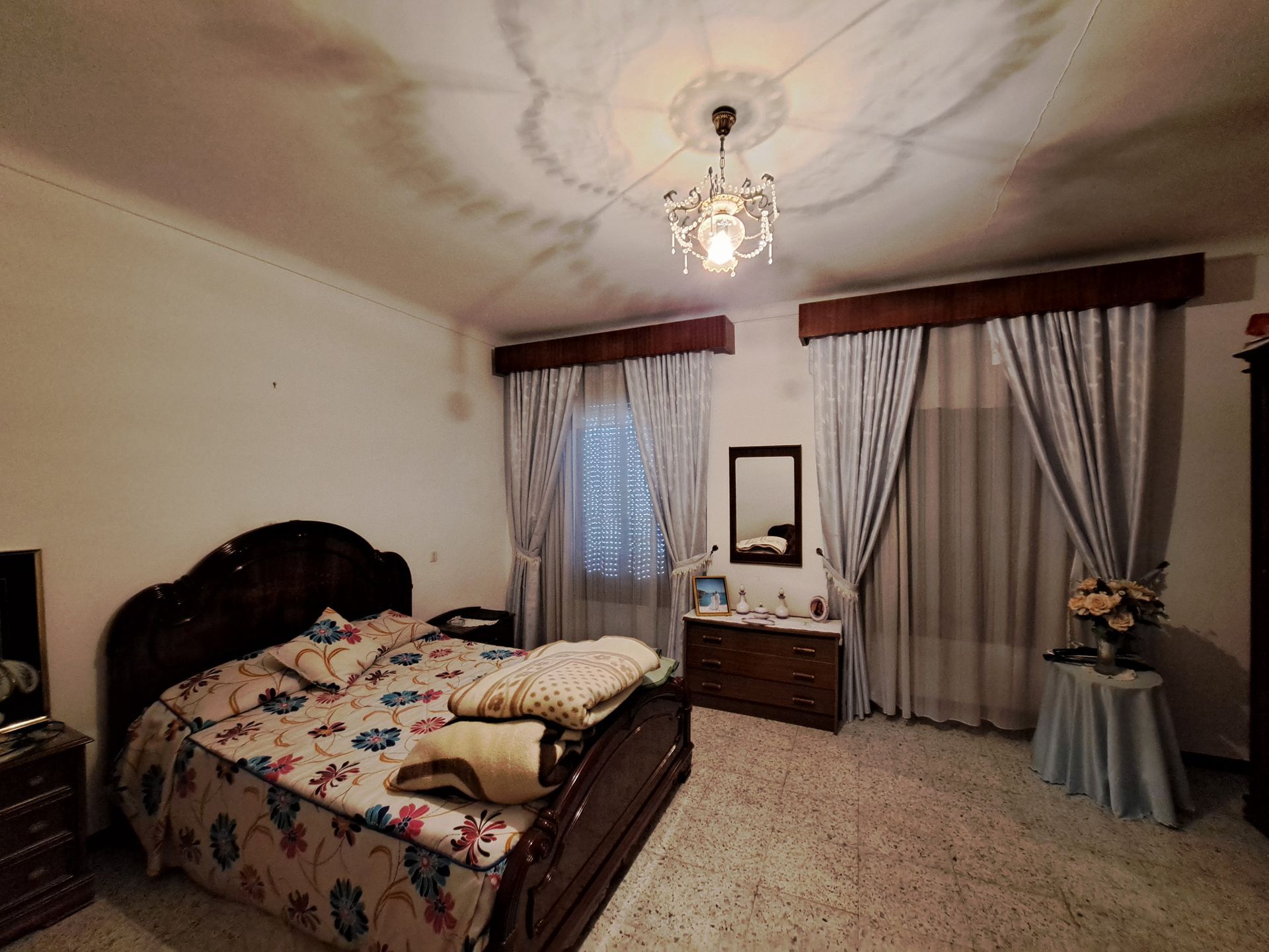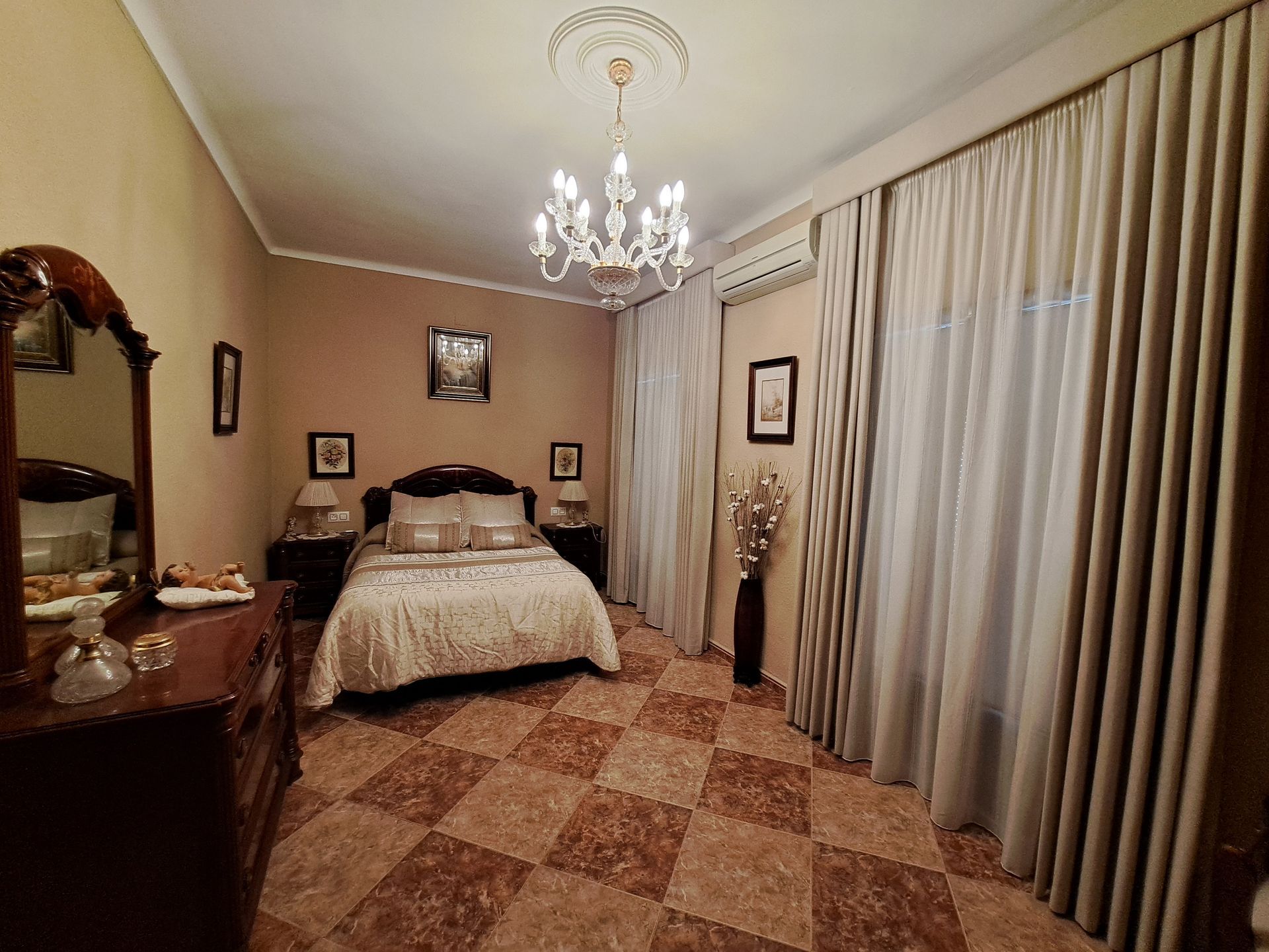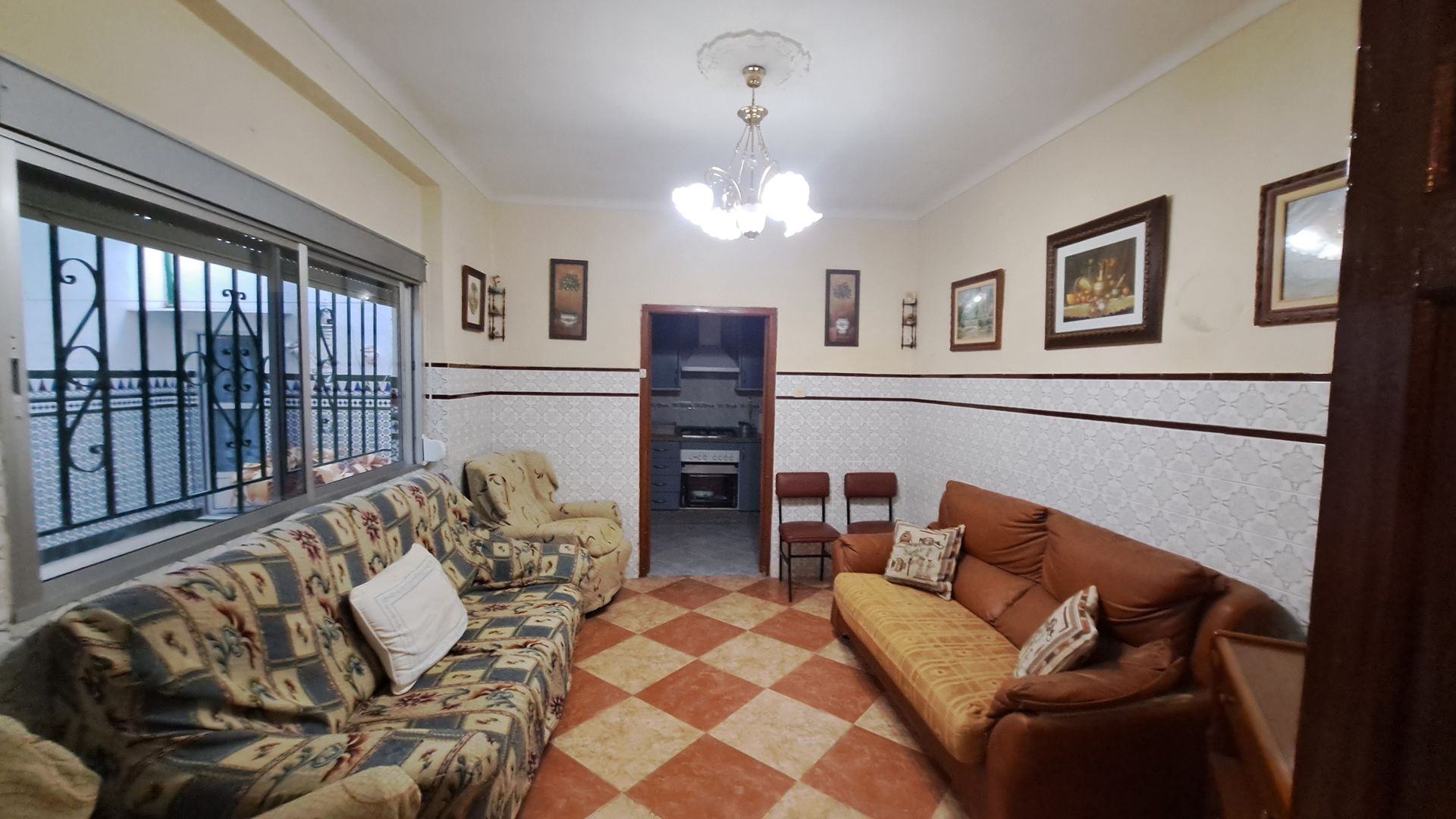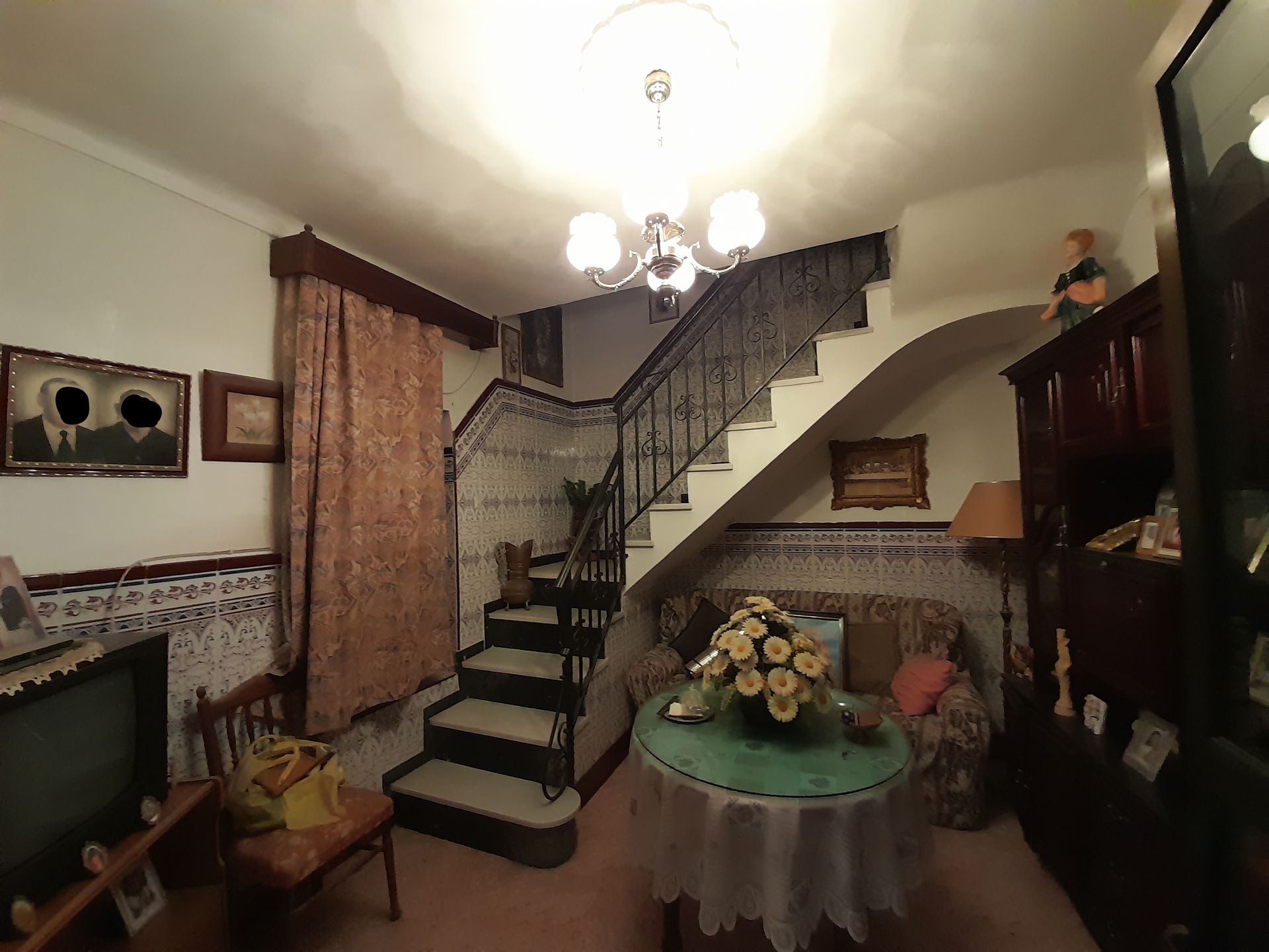 6 dormitorios,2 baños,2 aseos,cocina amueblada,2 patios, desván, bodega ,2 cocheras salida a dos calles.